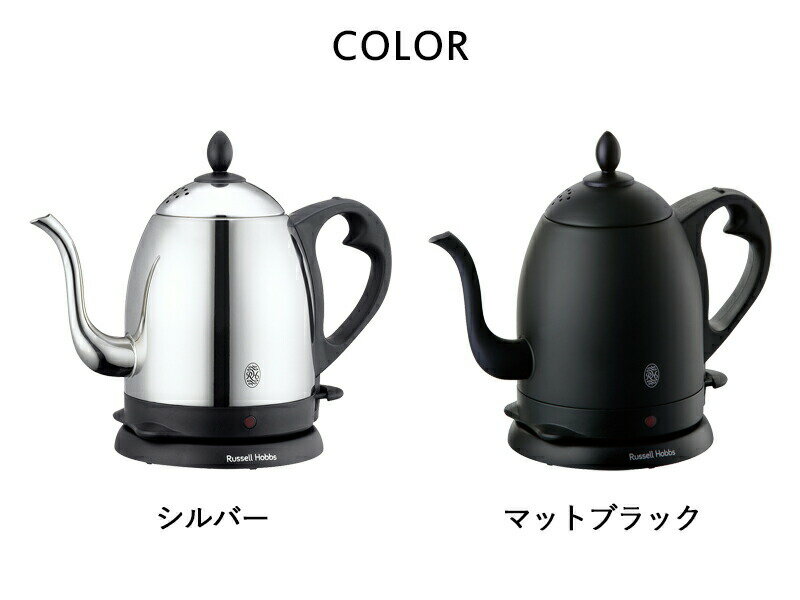 Russell Hobbs Cafe Kettle(カフェケトル) 0.8L / 1.0L / 1.2L ● 製品の仕様 ● 商品名 Russell Hobbs Cafe Kettle 0.8L サイズ 約 W25 × D13 × H20 cm(ケトル本体) コードの長さ 約 1.3 m 重 量 約 680 g(ケトル本体) 材 質 ステンレス / ポリプロピレン 最大容量 約 0.8 L 電 源 100V 50/60HZ 消費電力 1250 W 満水の沸騰時間 約 4 分(水温・室温24°の場合) カラー シルバー(7408JP) / マットブラック(7408JP-88) 入 数 1個 ■注意点 ※製品のサイズをご確認のうえ、ご注文ください。